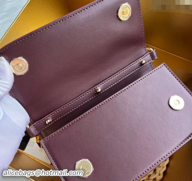 Famous Brand Dolce & Gabbana Calfskin Leather Crossbody 3.5 Bag DG9113 Dark Burgundy 2024
