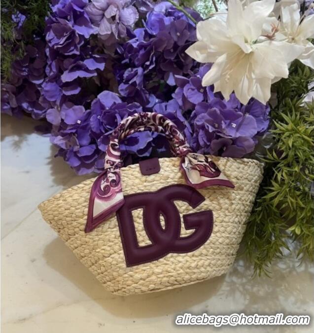 Good Taste Dolce&Gabbana Small Straw Shopper Bag 2828 Purple 2025