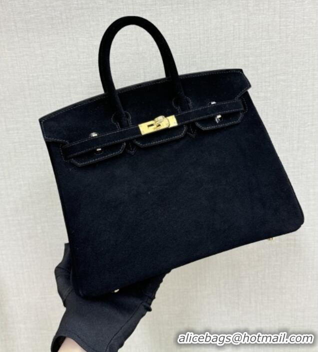 > Hermes Handbag > Hermes Birkin 25CM > Super Quality Hermes Birkin 25 Bag in Suede Leather H25 Black/Gold 2025 (Half Handmade)