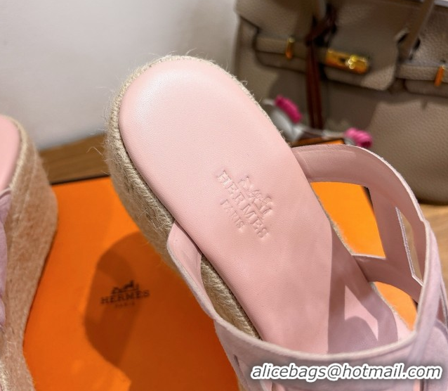 Classic Practical Hermes Lipari Wedge Slides Sandal in Suede and Leather Light Pink 1222088 2026