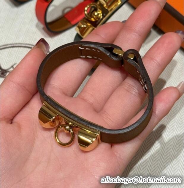 Good Taste Hermes Rivale Mini bracelet 7 in Swift Leather and Studs HS010407 Brown 2025