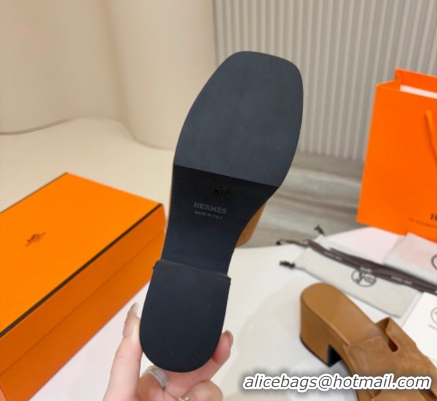 Good Taste Hermes Suede Platform Slides Sandal 7.5cm Brown 2025 H082003 0820018