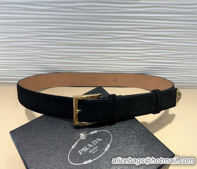 Good Taste Prada Suede Belt 3.5cm with Gold Pin Buckle 1127 Black 2024