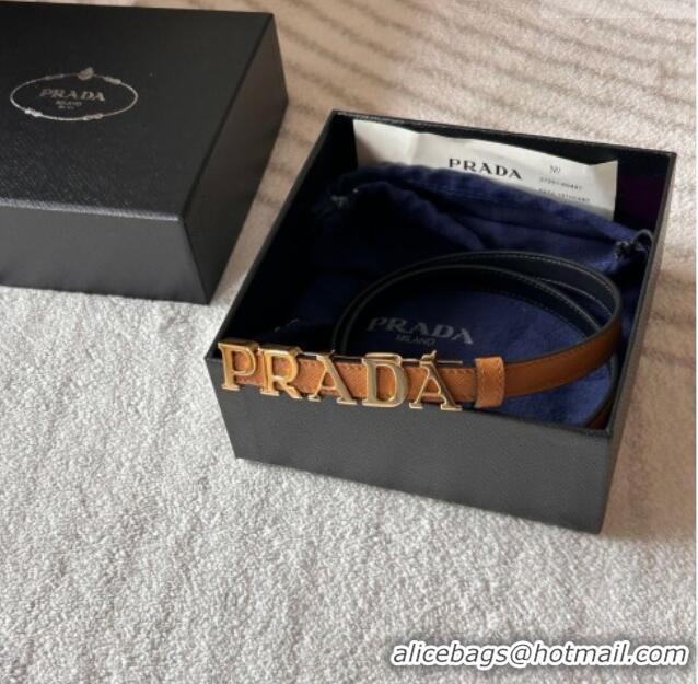 Popular Style Prada Women's Saffiano Leather Belt 1.5cm with Letters Buckle 0315 Brown 2025