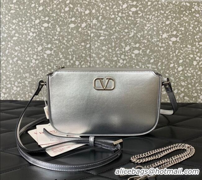 Good Taste Valentino Mini VLogo Signature Calfskin Crossbody Bag VLTN079 Silver 2024