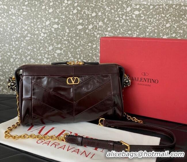 Buy Fashionable Valentino Panthea Small HandBag in V Shiny and Matte Nappa Leather 0075 Dark Burgundy 2026