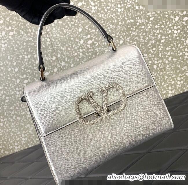 Promotional Valentino Small VSLING Grainy Calfskin Handbag with Strass 7020 Silver 2025