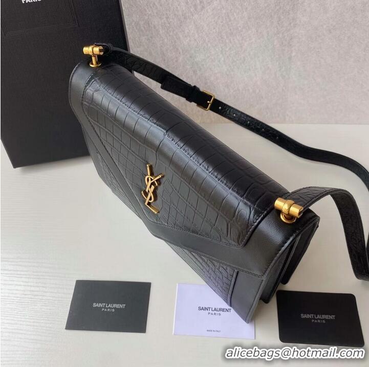Good Taste Yves Saint Laurent GABY SATCHEL IN CROCODILE-EMBOSSED LACQUERED LEATHER AND LAMBSKIN 695724 black