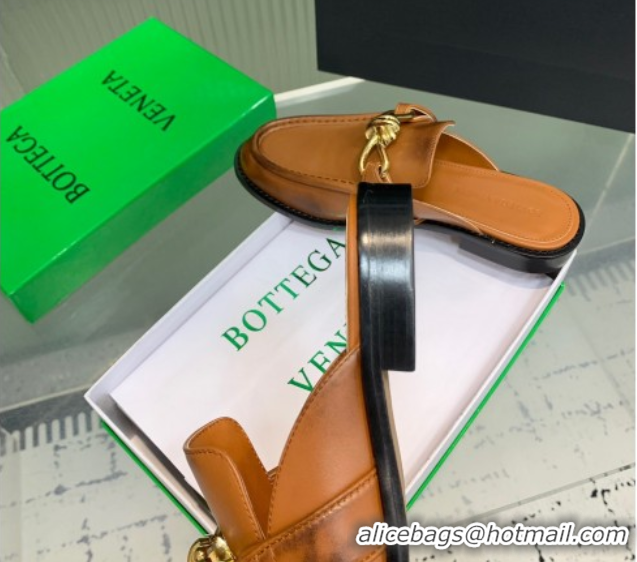 Grade Bottega Veneta Astaire Flat Mules in Faded Calfskin with Knot Brown/Gold 0823047