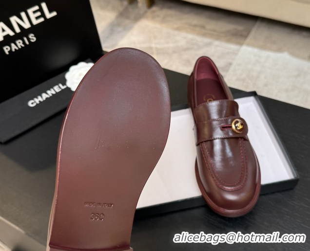 Popular Style Chanel Shiny Calfskin Loafers with Button Strap Burgundy 2025 G46796 1031093