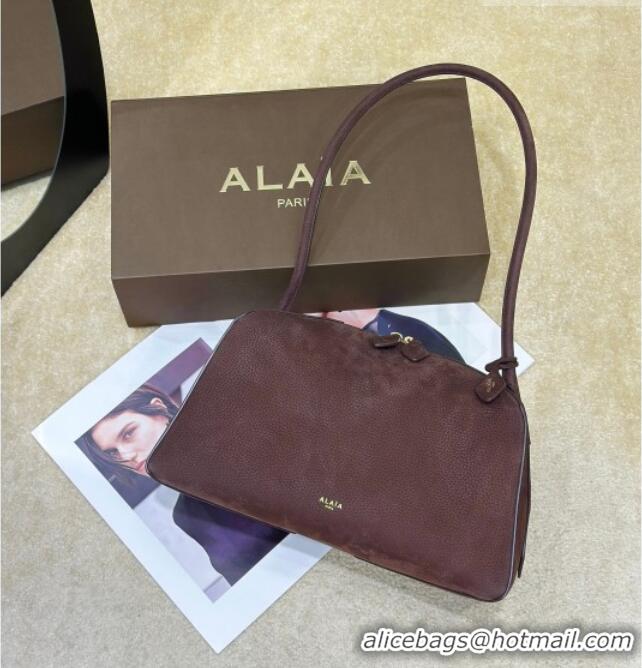 Your Position: Home > Alaia Bags > Buy Discount Alaia Le Bouledogue Bowling Shoulder Bag in Nubuck Leather 8855 Dark Brown 2026