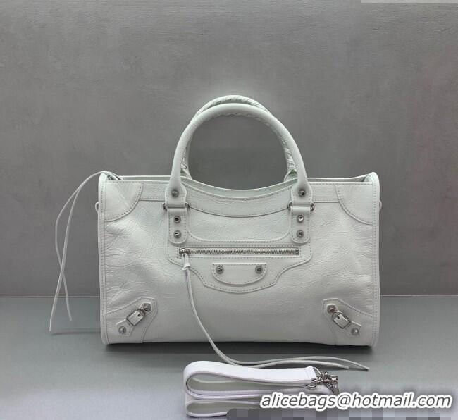 Best Price Balenciaga Le City Medium Bag in Arena Storico lambskin 49001 optic white shiny silver hardware 2025