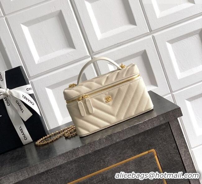 Trendy Design Chanel Vanity with Chain in Chevron Grained Calfskin AP5212 Light Beige 2026