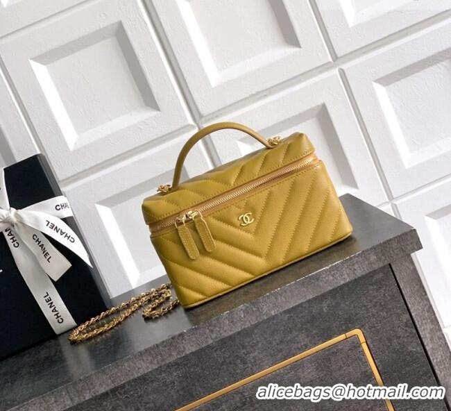 Grade Design Chanel Vanity with Chain in Chevron Grained Calfskin AP5212 Bean Paste Green 2026