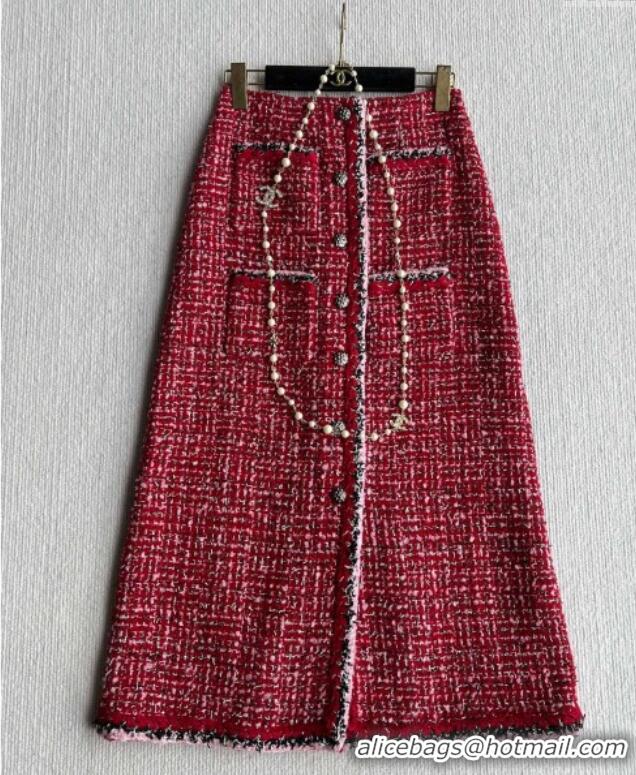 > Clothes Online > Chanel Clothes > Grade Design Chanel Wool Blend Tweed Skirt CH110624 Red 2025