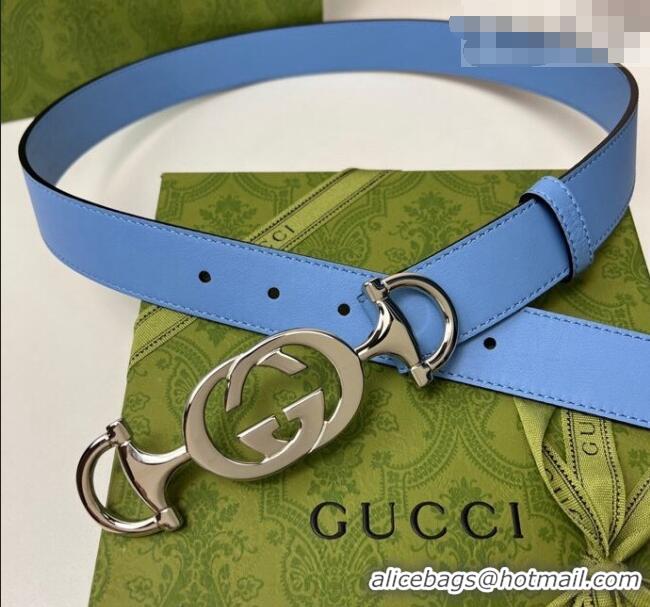 Grade Design Gucci Calfskin Leather Belt 3cm with GG Chain GG102106 Light Blue 2024