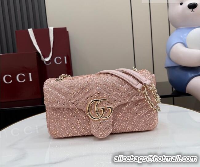Super Quality Gucci GG Marmont crystals medium shoulder bag 837267 Light Pink 2026