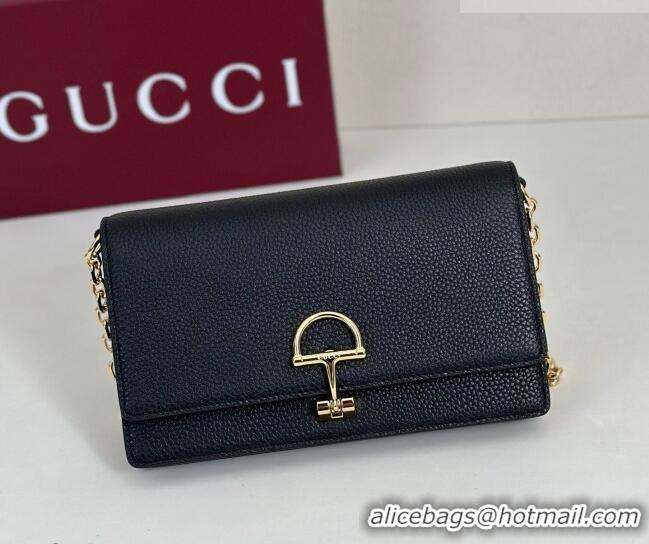 Grade Design Gucci Half Horsebit wallet on chain in Grainy Leather 855654 Black 2026