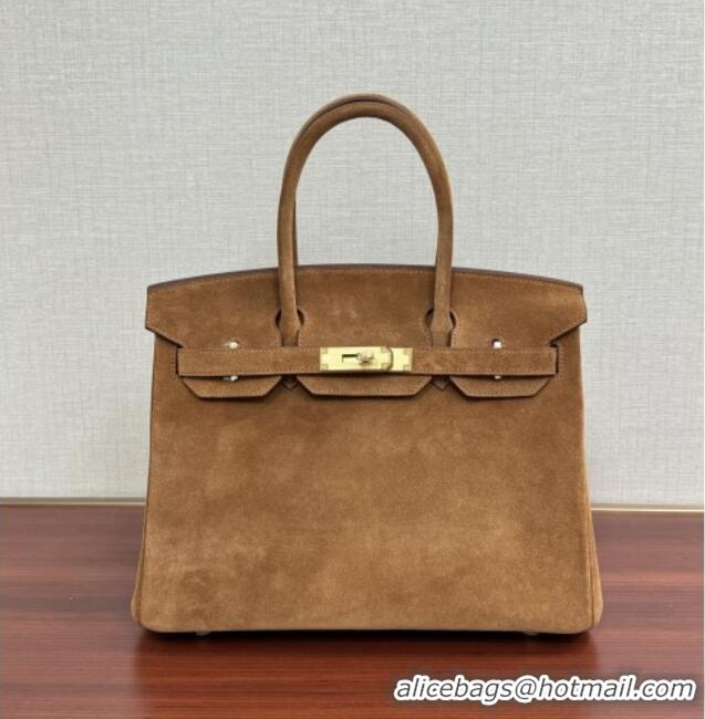 Your Position: Home > Hermes Handbag > Hermes Birkin 25CM > Grade Design Hermes Birkin 25 Bag in Suede Leather H25 Brown/Gold 2025 (Half Handmade)