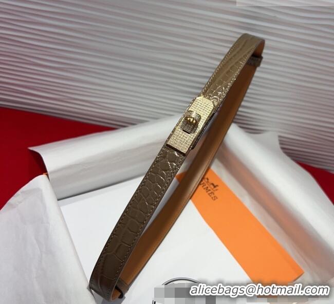 Grade Design Hermes Kelly Duo Belt 1.8cm in Crocodile Embossed Calfskin with Gold Strass Paved Buckle H2011025 Grey 2025