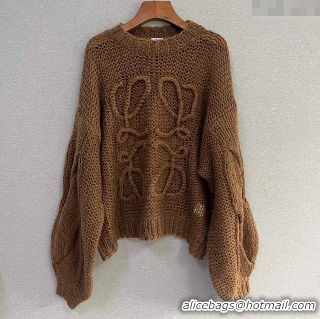 Your Position: Home > Clothes Online > Loewe Clothes > Grade Design Loewe Mohair Crochet Sweater 0904 Brown 2025
