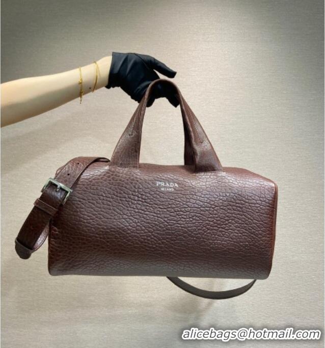Shop Fashion Prada Mens Small Maxi-Grianed leather duffle bag 2VC046 Brown 2025