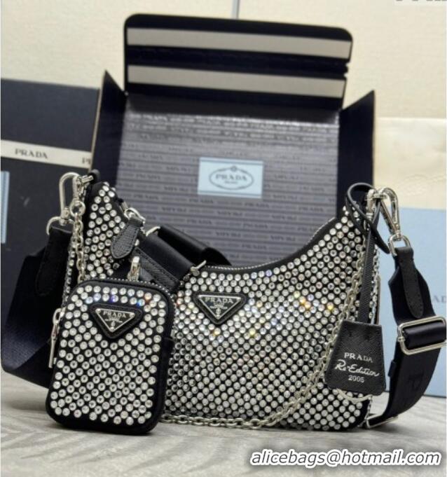 > Prada Handbags > Prada 2025 Bags > Grade Design Prada Re-Edition 2005 crystal-studded satin Bag 1BH204 Black 2025