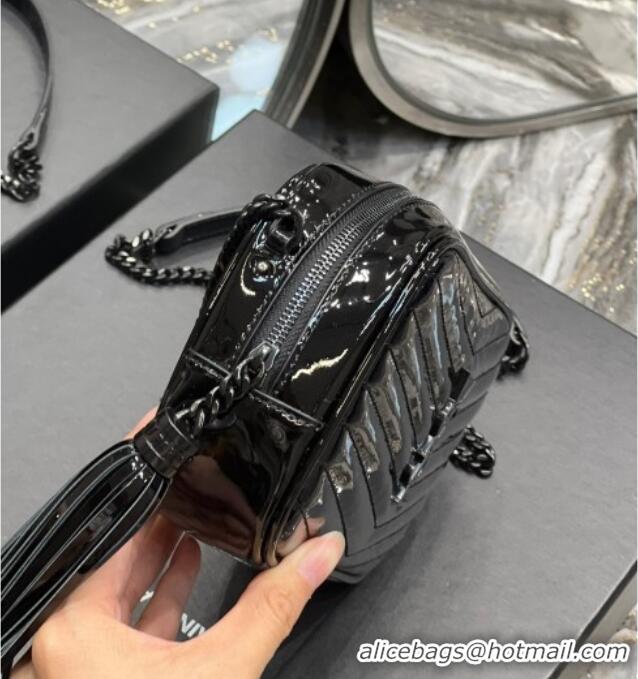 Promotional Saint Laurent Lou Mini Camera Bag with Tassel in Matelasse Patent Leather 585040 Black 2025