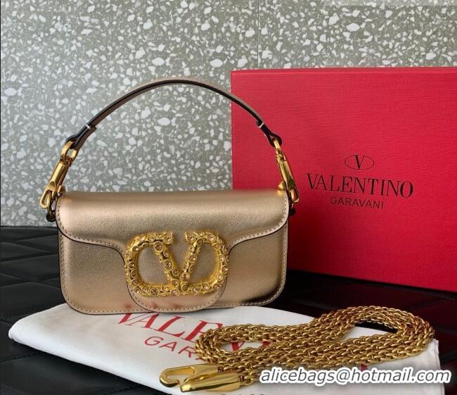 Top Design Valentino Loco Small Shoulder Bag in Laminated Calfskin with Jewel Logo 5061 Rose Gold 2025