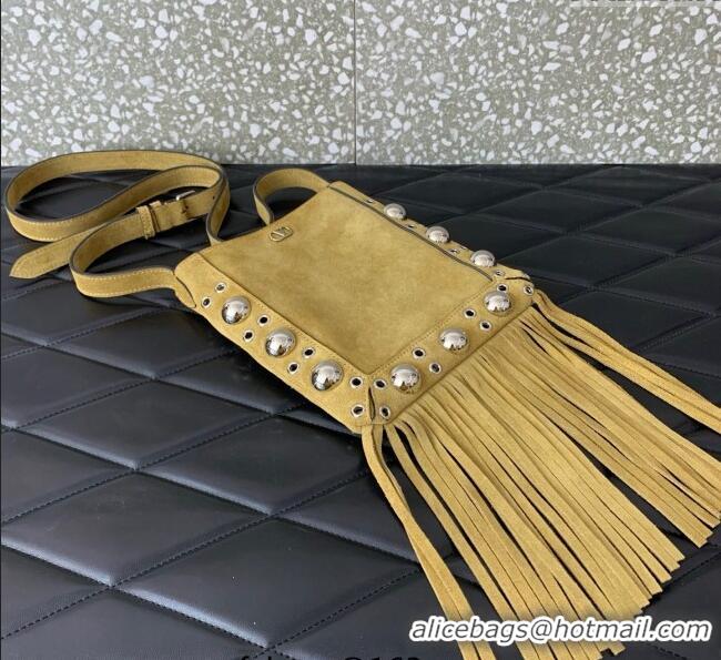 Grade Design Valentino Nellcote Small Shoulder Bag in Suede with Fringes Tassel and Ball Studs 2034 Khaki 2025