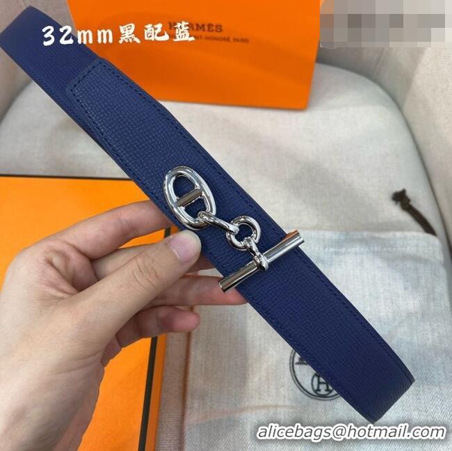 > Belts Mall > Hermes Belts > Grade Discount Hermes Yachting belt buckle & Reversible Epsom leather strap 3.2cm 0314 Black/Blue 2025