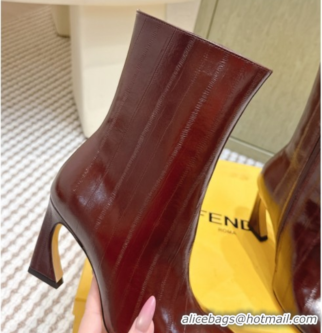 Good Product Fendi Arco Heel Ankle Boots 9.5cm in Hagfish Embossed Leather Dark Brown 1030036