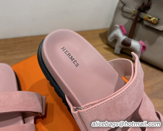 AAAAA Hermes Chypre Slide Sandals in Suede Light Pink 2025 H082008 0820080