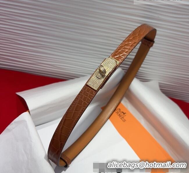 Grade Hermes Kelly Duo Belt 1.8cm in Crocodile Embossed Calfskin with Gold Strass Paved Buckle H2011025 Brown 2025
