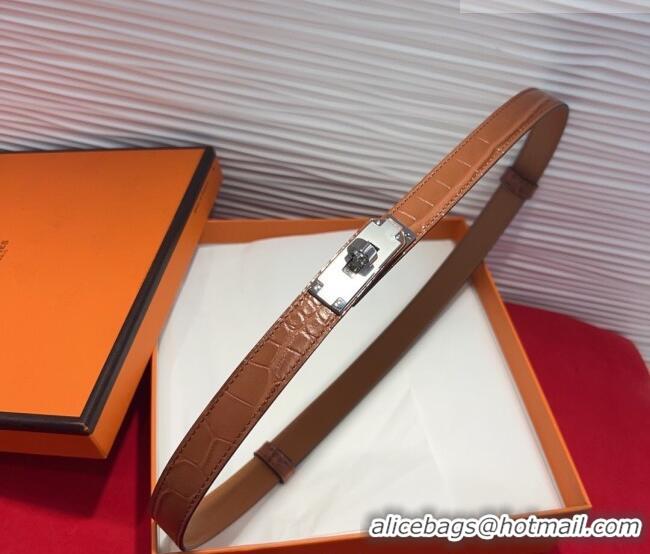 New Fashion Hermes Kelly Duo Belt 1.8cm in Crocodile Embossed Calfskin with Metal-Tone Buckle H2011025 Brown/Silver 2025