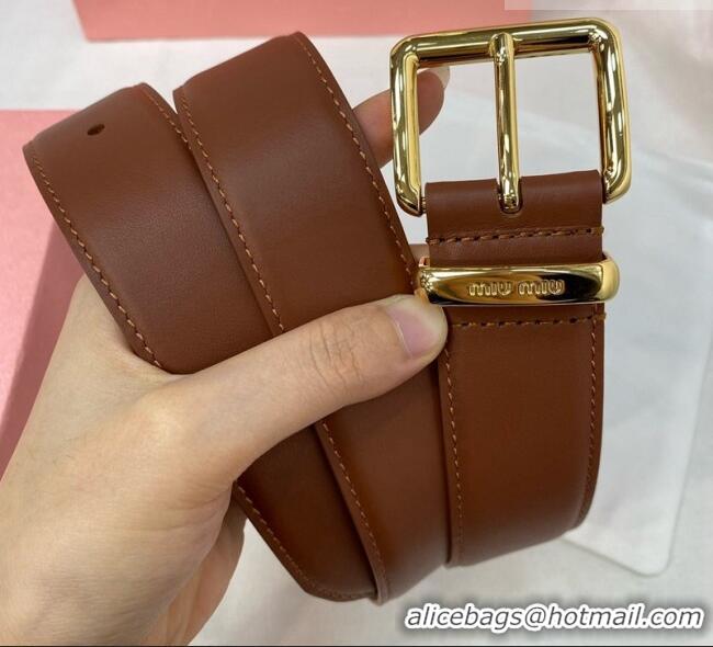 Top Grade Miu Miu Calfskin Belt 3cm with MIU Buckle MM102201 Brown/Gold 2024