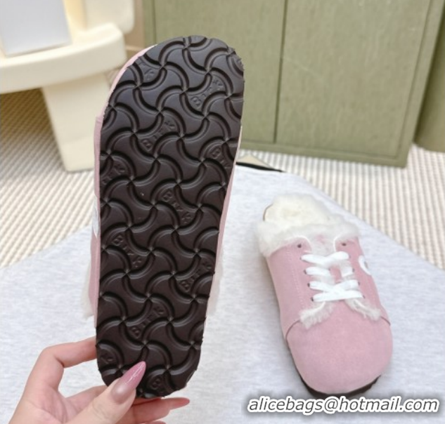 > Shoes Plaza > Loewe Shoes > Stylish Loewe x Birkenstock Laced-up Mules in Suede and Wool 2026 LW103005 Pink