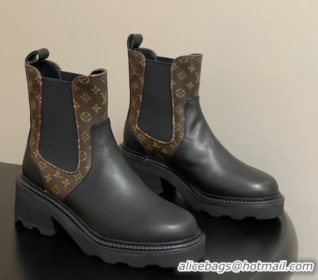 Low Cost Louis Vuitton LV Beaubourg Chelsea Ankle Boots in Monogram Canvas and Leather Black 1AIEJ4 1022056