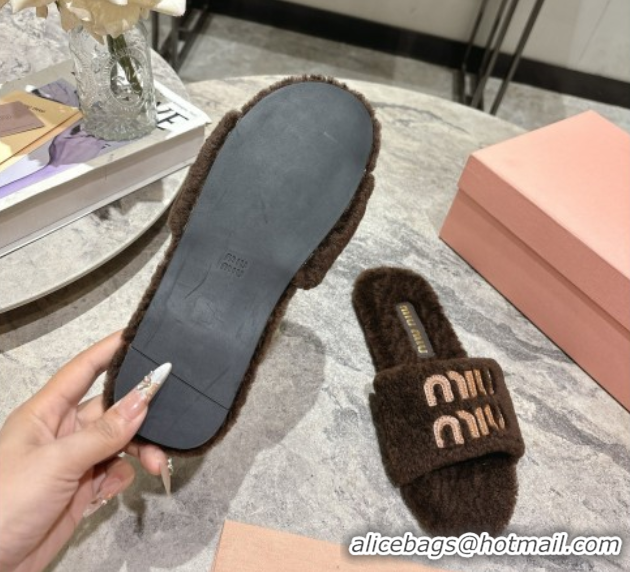 Grade Quality Miu Miu Shearling Flat Slides Sandal Dark Brown MIU082608 0826052