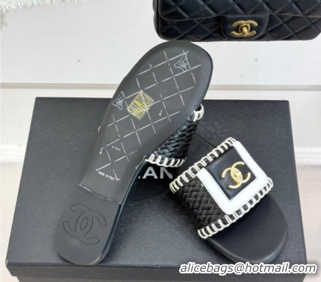 Good Product Chanel Straw-Like Flat Slides Sandal with CC Foldover CH030702 Black 2026