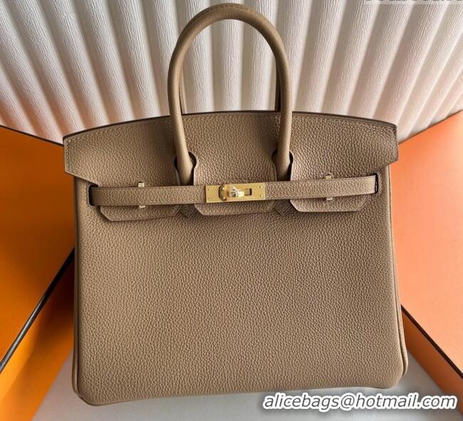 Grade Promotional Hermes Birkin 25cm Bag in Togo Calfskin Leather HE25 Milk Tea Beige 2025 (Full Handmade)