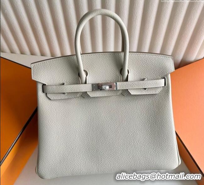 > Hermes Handbag > Hermes Birkin 25CM > Top Quality Hermes Birkin 25cm Bag in Togo Calfskin Leather HE25 Cream White/Silver 2025 (Full Handmade)