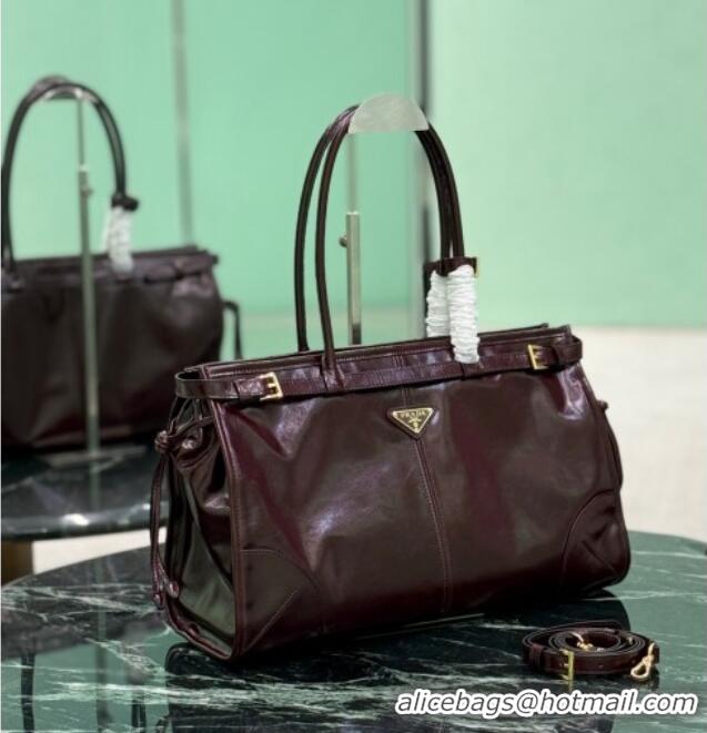 Grade Promotional Prada Bonnie large leather handbag 1BA433 Burgundy 2025
