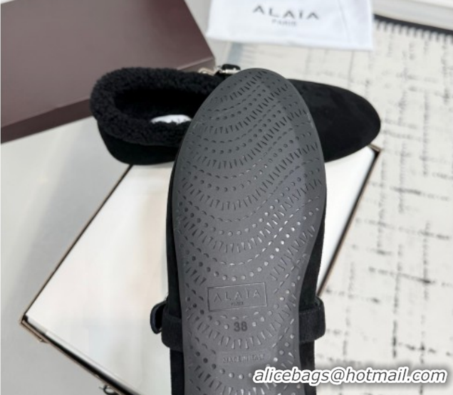 Good Quality Alaia Ballet Flats in Suede and Shearling 2026 AL102901 Black