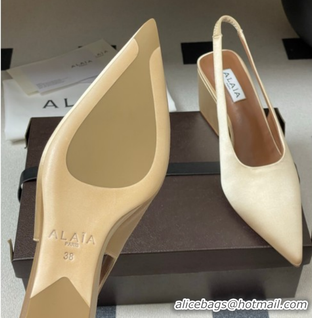 Buy Luxury Alaia Cube Wedge Slingbacks Pump 7.5cm in Satin Beige 2026 AL020707