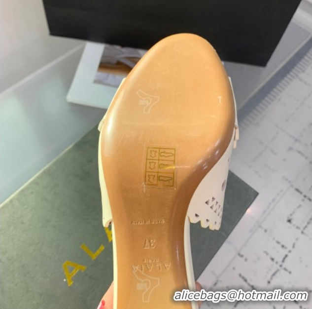 Grade Quality Alaia Heel Slides Sandal in Openwork Leather Ivory White AL122302 1223032