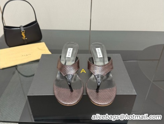 Best Grade Alaia Heel Thong Slides Sandal 5.5cm in Snakeskin Like Brown 0827082