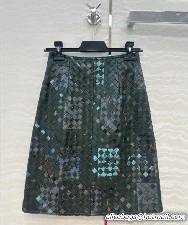 Grade Quality Bottega Veneta Printed Intrecciato Lambskin Leather Skirt 0814 Green 2025