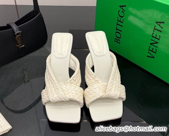 Classic Hot Bottega Veneta Riva Heel Slides Sandal 9.5cm in Braided Straw 861494 White 2026