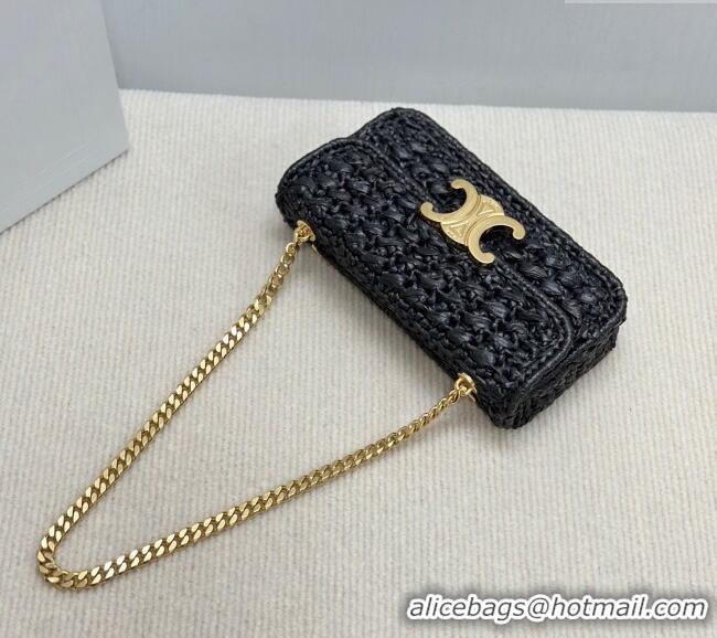 Your Position: Home > Celine Handbags > Celine 2025 Bag > Grade Quality Celine Chain Shoulder bag in Raffia Straw Effect Textile 112252 Black 2025